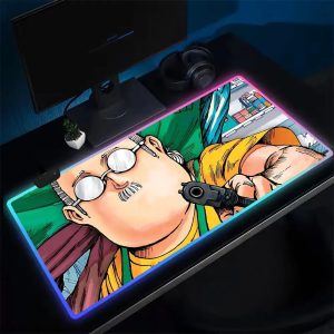 Upgrade your workspace with the Sakamoto Days mouse pad! Featuring stunning LED lighting and a rubber base, this RGB desk pad offers a smooth and stable surface for precision. Perfect for work or gaming, it brings your favorite manga to life while adding a sleek, modern touch to your desk.